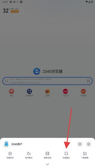 2、用户需要在功能选项栏中找到并点击无痕模式的按钮。