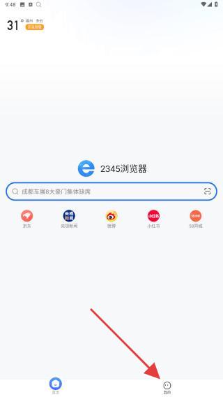 1、找到2345浏览器图标并点击,进入主界面点击我的提示图标。