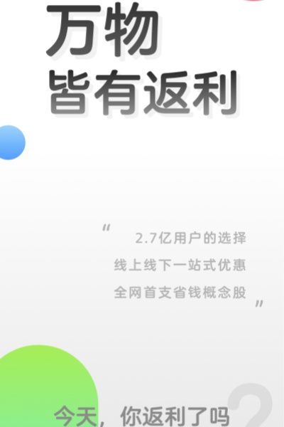 拥有返利网app,线上线下,衣食住行,吃喝玩乐,随时随地,轻松省钱拿返利,省钱省时间!