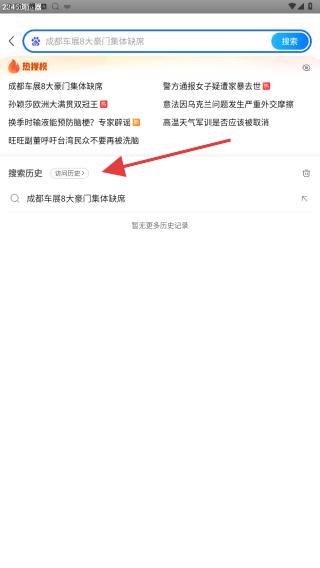 2、在搜索页面的下方找到搜索历史的字眼,并点击右侧的访问历史即可。