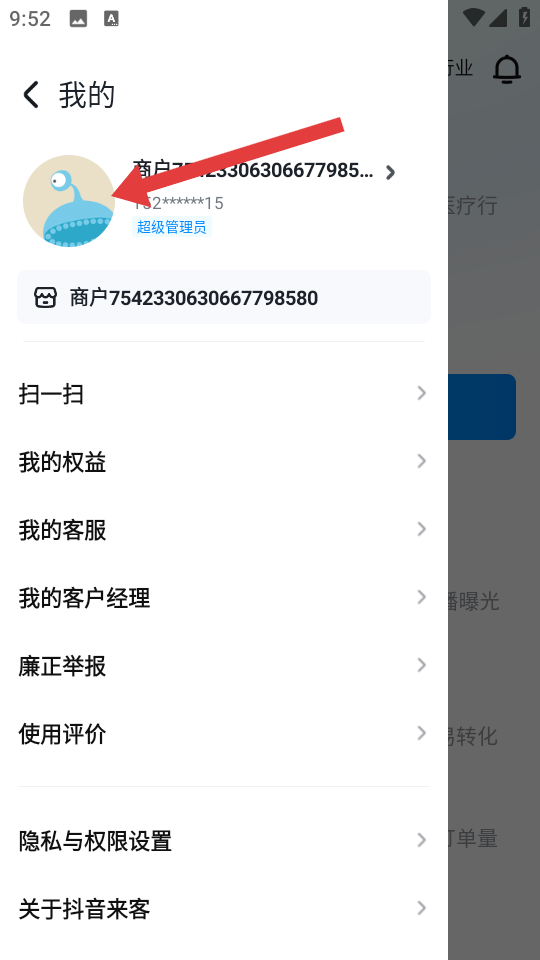 1、进入抖音来客我的页面,点击头像的区域,进入个人中心界面,这是注销账号的起始操作步骤。