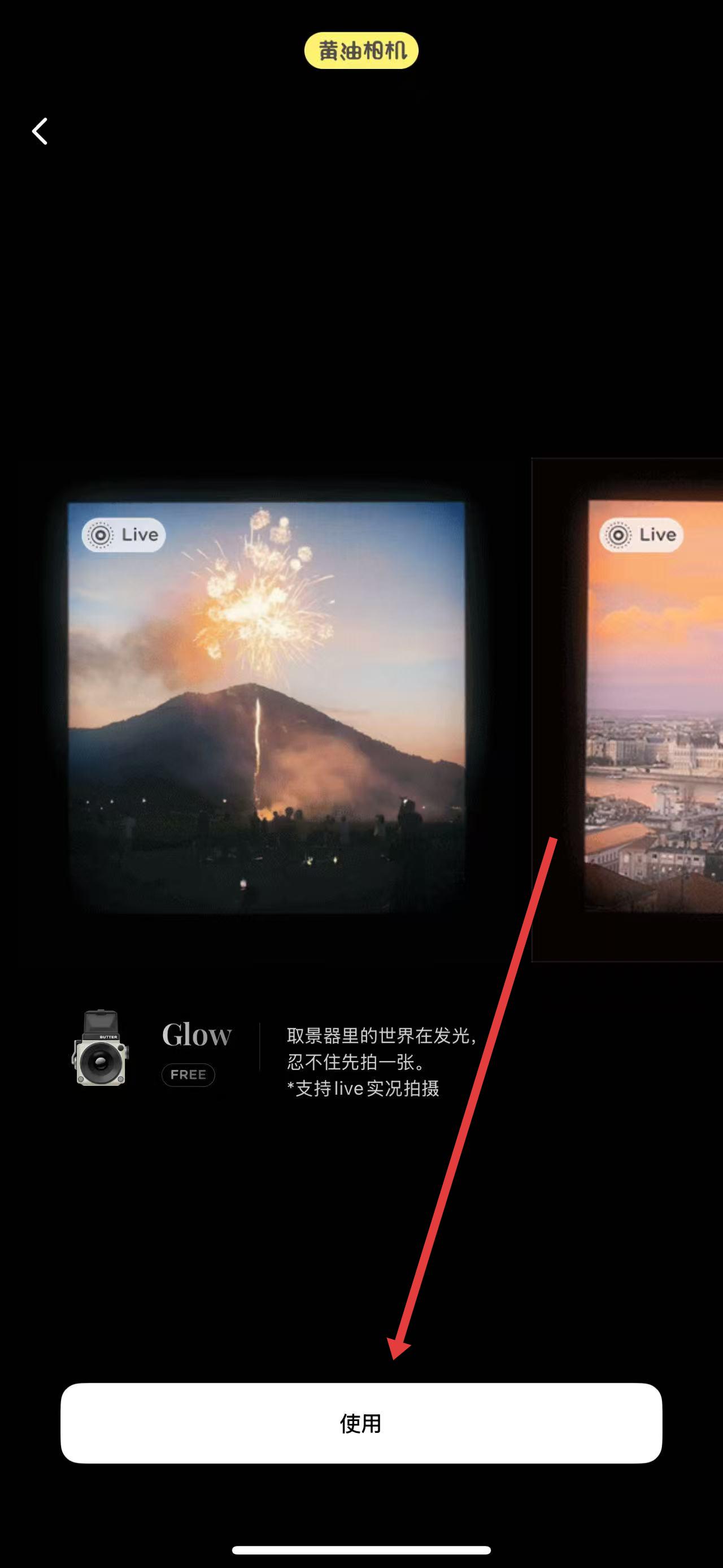 3、选好相机风格后,点击使用按钮,对准拍摄对象,按下拍摄键即可完成照片拍摄。
