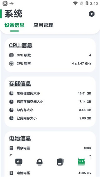 4、此外,软件还提供设备信息查询功能,显示安卓系统版本、手机型号、品牌、制造商等关键参数,全面了解手机硬件配置。