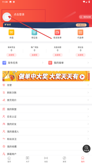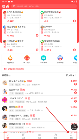 1、打开赚钱应用,点击底部我的图标,进入个人中心页面。