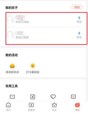 4、创建完成后,返回我的界面就可以看到已成功添加2个孩子。
