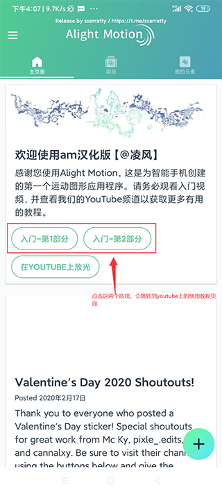 1、首先安装好软件后,点击进入软件,在软件的首页可以看见“入门-第一部分”、“入门-第二部分”,点击这两个按键,页面就会跳转到youtube上的使用教程页面;
