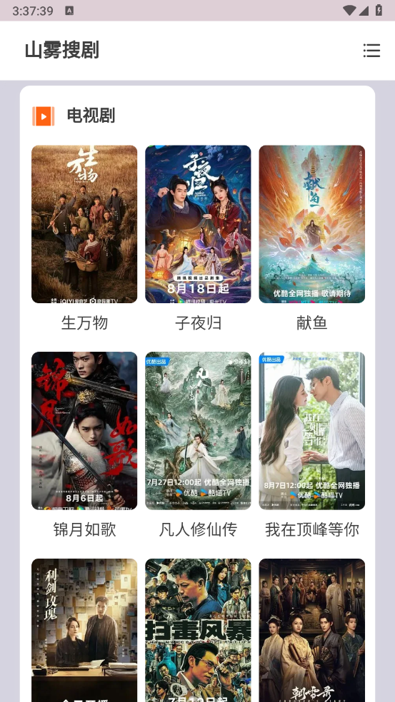 山雾搜剧聚合了海量的影视资源信息,涵盖电影、电视剧、动漫、综艺四大主要类别。