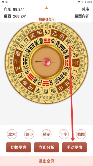 2、全屏模式下点击手动罗盘,可以切换为手动调节罗盘的模式。