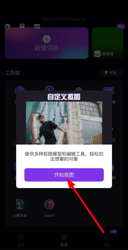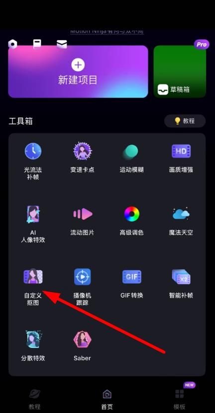1、打开alight motion应用,在首页的工具箱中,点击自定义抠图选项。