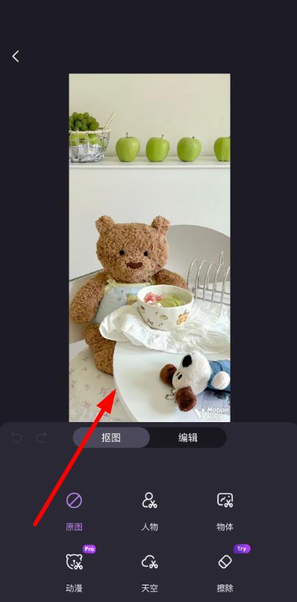 3、选择要进行抠图的图片导入 ,进入抠图编辑界面后,利用下方提供的人物物体擦除等工具和选项,以得到想要的抠图效果。