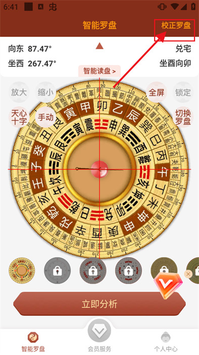 4、如果想要自定义一些罗盘的细节,返回到首页,点击【矫正罗盘】就能自动回到默认状态。