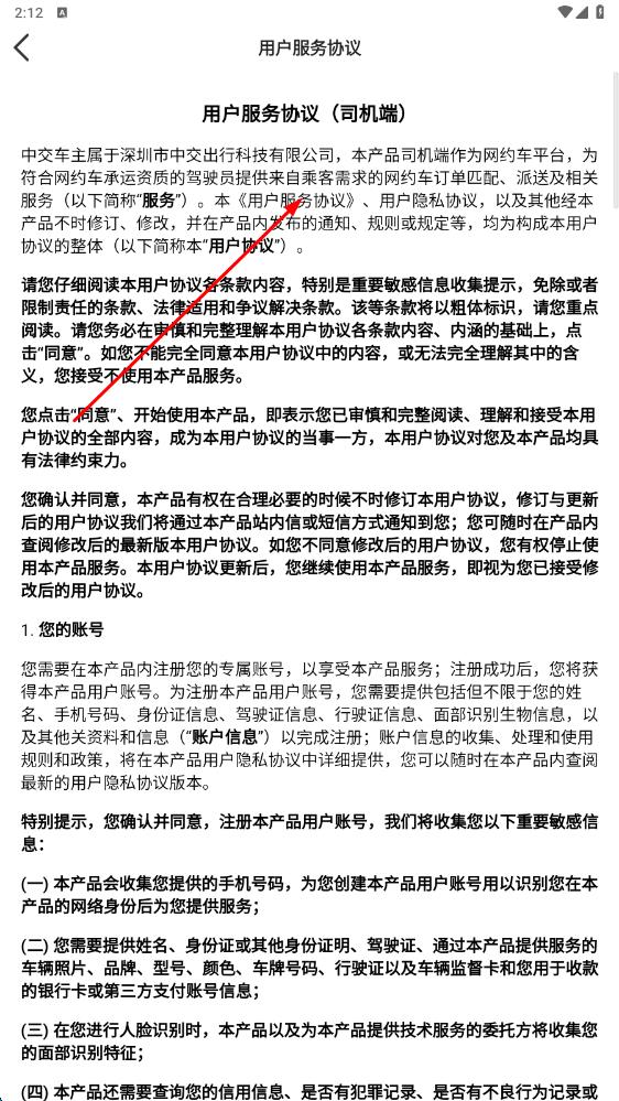 1、进入司机端注册页面,先仔细阅读用户服务协议(司机端)内容,确认无异议后,准备进行后续操作。