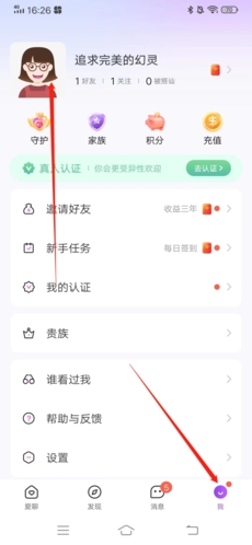 1、进入APP后,首先点击右下角的“我”,再点击上方的个人“头像”;