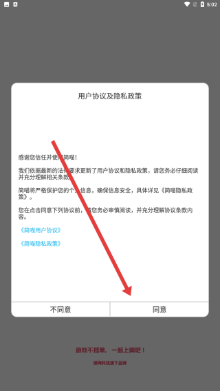 1、在用户协议及隐私政策弹窗中,阅读相关条款后点击同意,方可继续后续登录或注册操作。