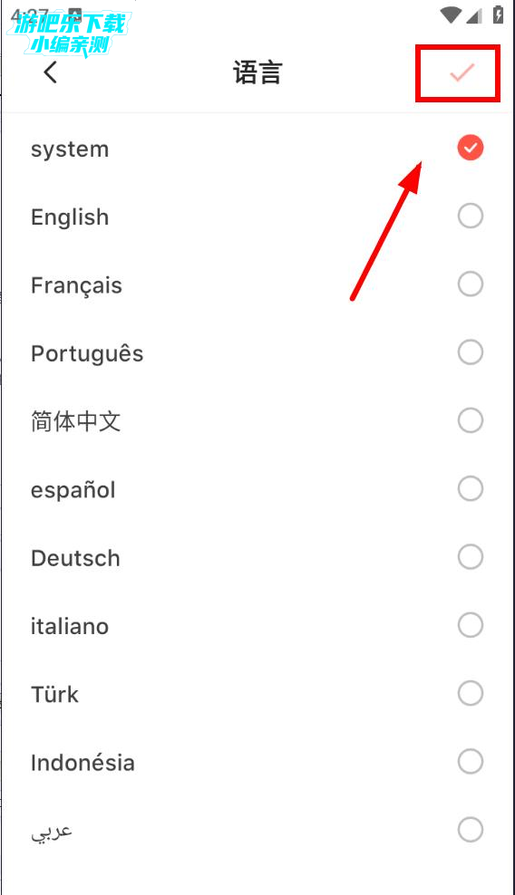 选择好自己想要的语言确定之后点击上面的√即可