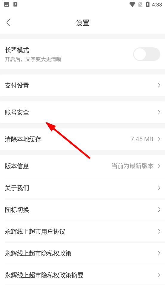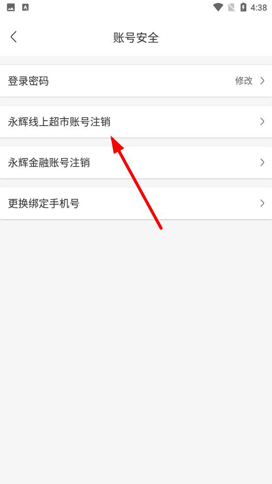 3、在账号安全页面中,点击永辉线上超市账号注销选项,按照后续页面的提示完成身份验证等相关操作后,即可注销永辉生活app账号。