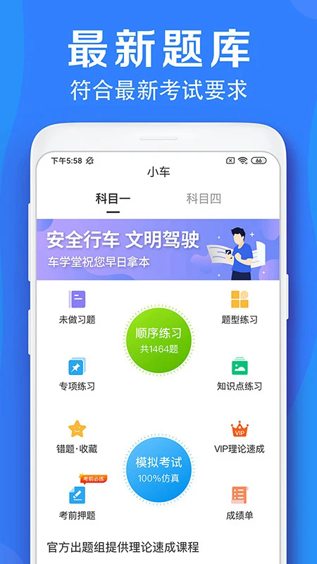 车学堂是一款专业的驾考知识软件,软件包含的内容非常丰富,能够帮助用户快速拿证,还有最新题库内容,都是根据最新考试要求改的,有高清视频可以看,每次做错的题目都会被记录下来,提供便捷的学习技巧,并且还能对题目进行精准分析,用户可以根据自己的要求选择不同的练习方式,比如顺序练习,随机练习,章节练习等,在线就可以学习。
