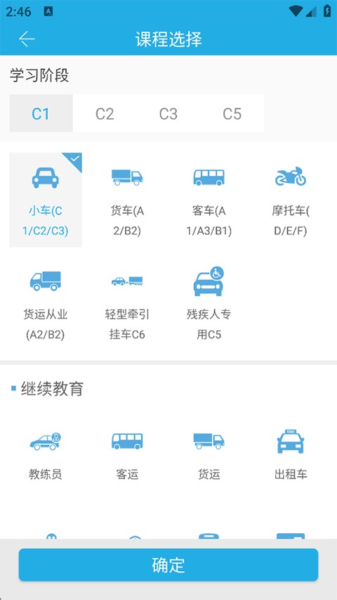 1、打开车学堂APP,选择学习阶段和所考车型,点击确定;