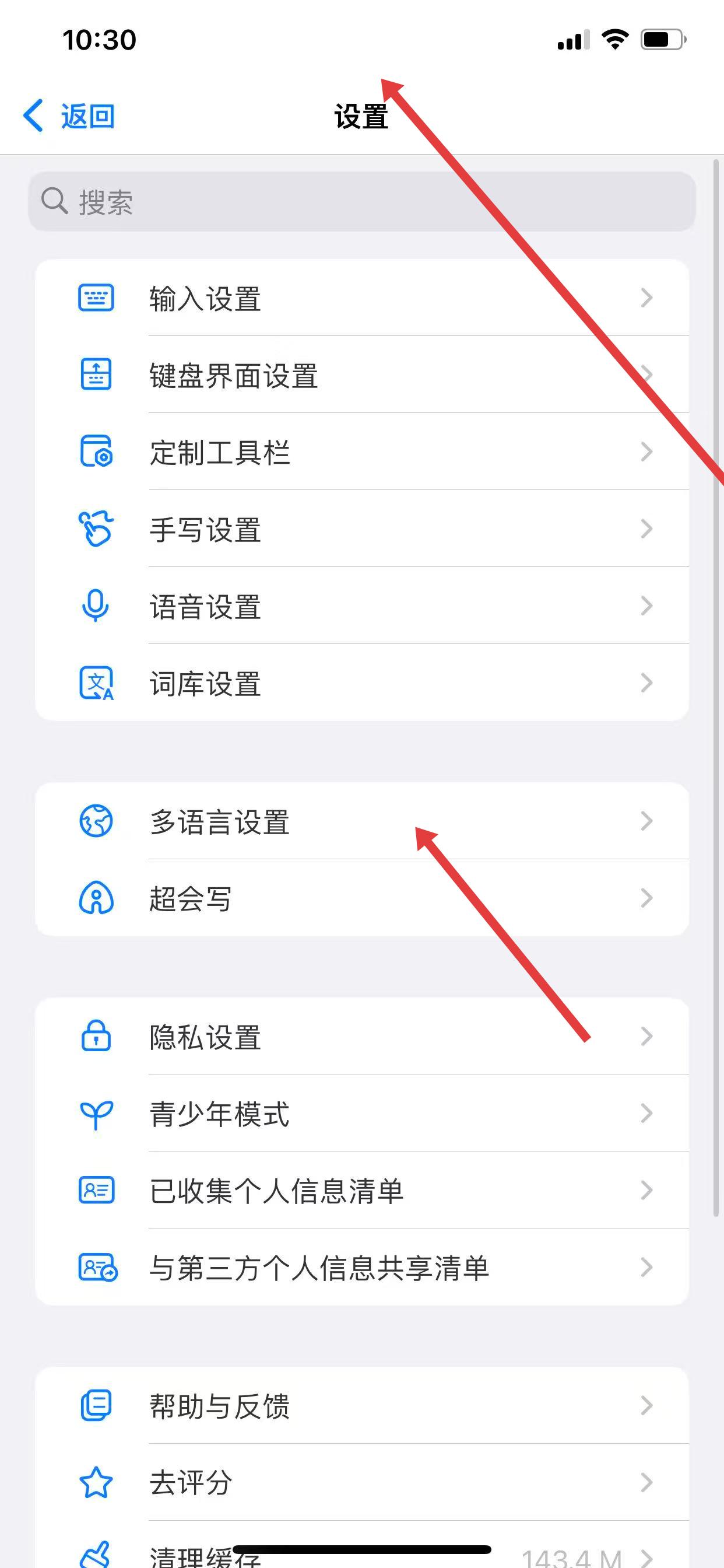 1、打开百度输入法,进入设置页面,点击多语言设置。