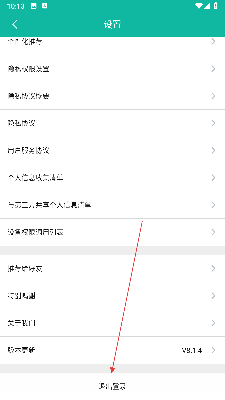 2、进入设置界面后,在设置的界面下滑到最底部,找到退出登录选项并点击。