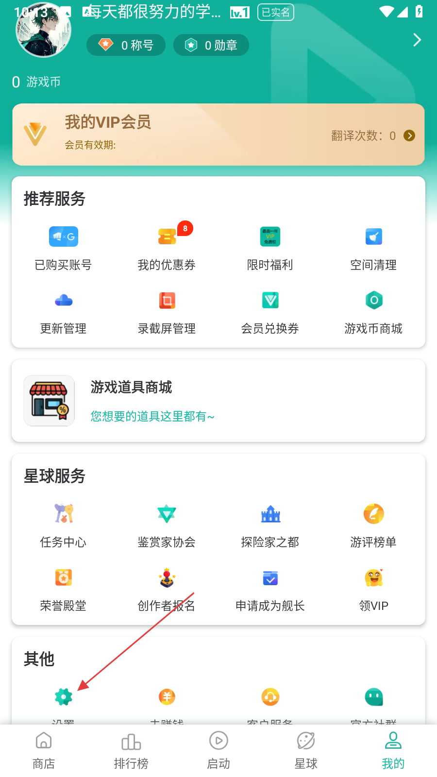 1、打开OurPlay应用进入我的页面,在页面下方其他板块中找到设置选项并点击,进入设置界面。