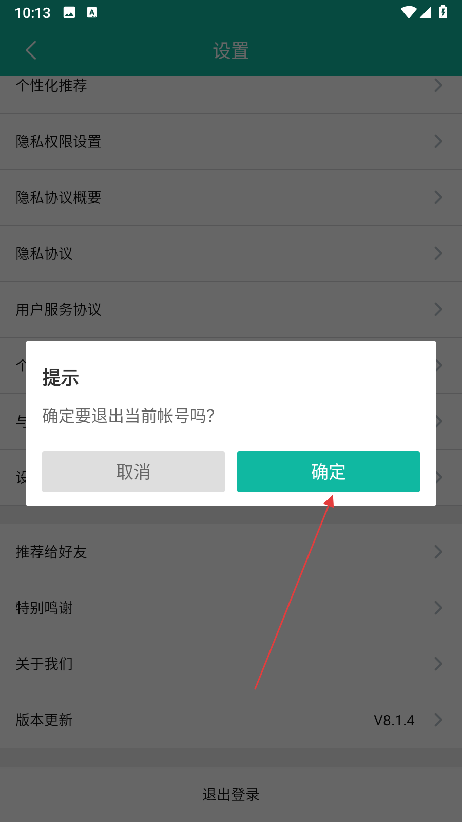 3、此时会弹出提示框询问是否确定退出当前账号,在弹出的提示框中点击确定按钮,即可完成退出登录操作。