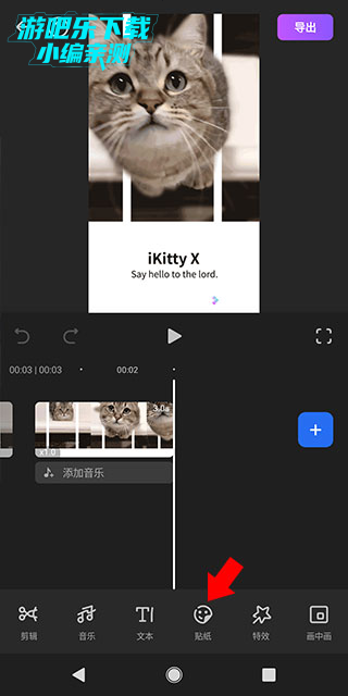 ・最下方是【工具栏】,可剪辑视频以及为视频添加文字、贴纸以及特效等;