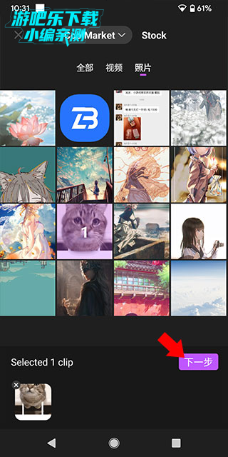 ・打开相册,选择视频或者照片文件,点击【下一步】;