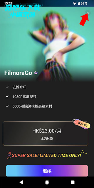 来到下方界面后,点击右上角的【x】,关闭订阅付费界面;