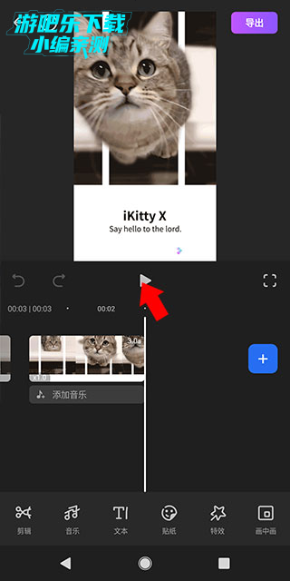 ・编辑界面的正下方,点击可查看【播放】效果,滑动下方的时间轴可查看视频帧;