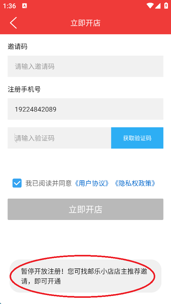1、如果注册遇到这种情况,只需要通过老用户分享注册。