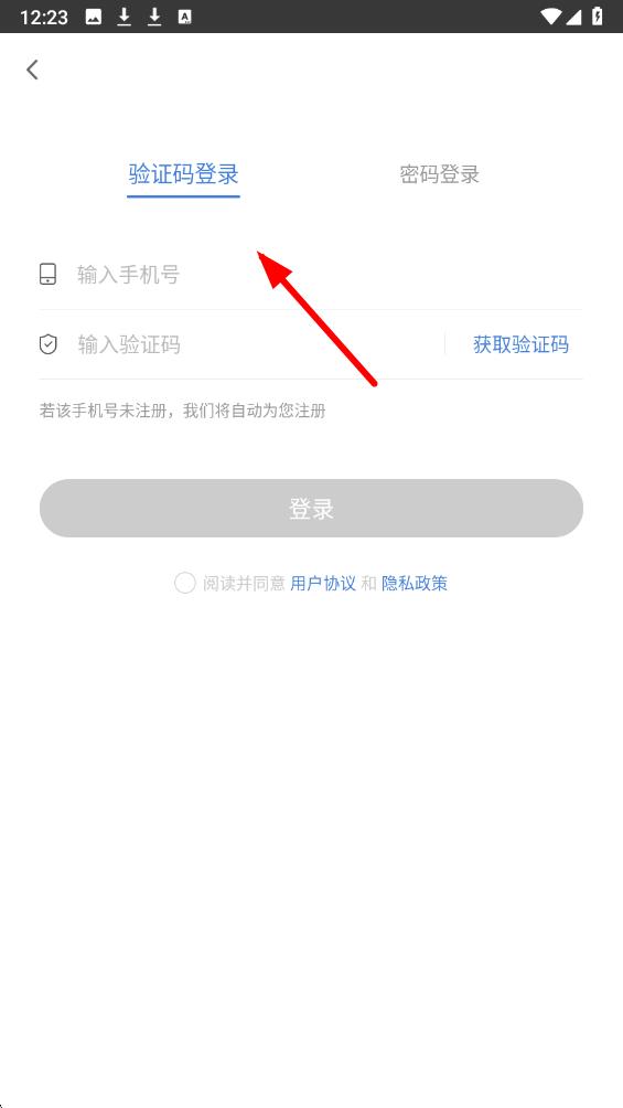 1、打开二建万题库app,进入登录界面,默认是验证码登录方式,在输入手机号栏填写手机号,点击获取验证码并填入收到的验证码,点击登录。