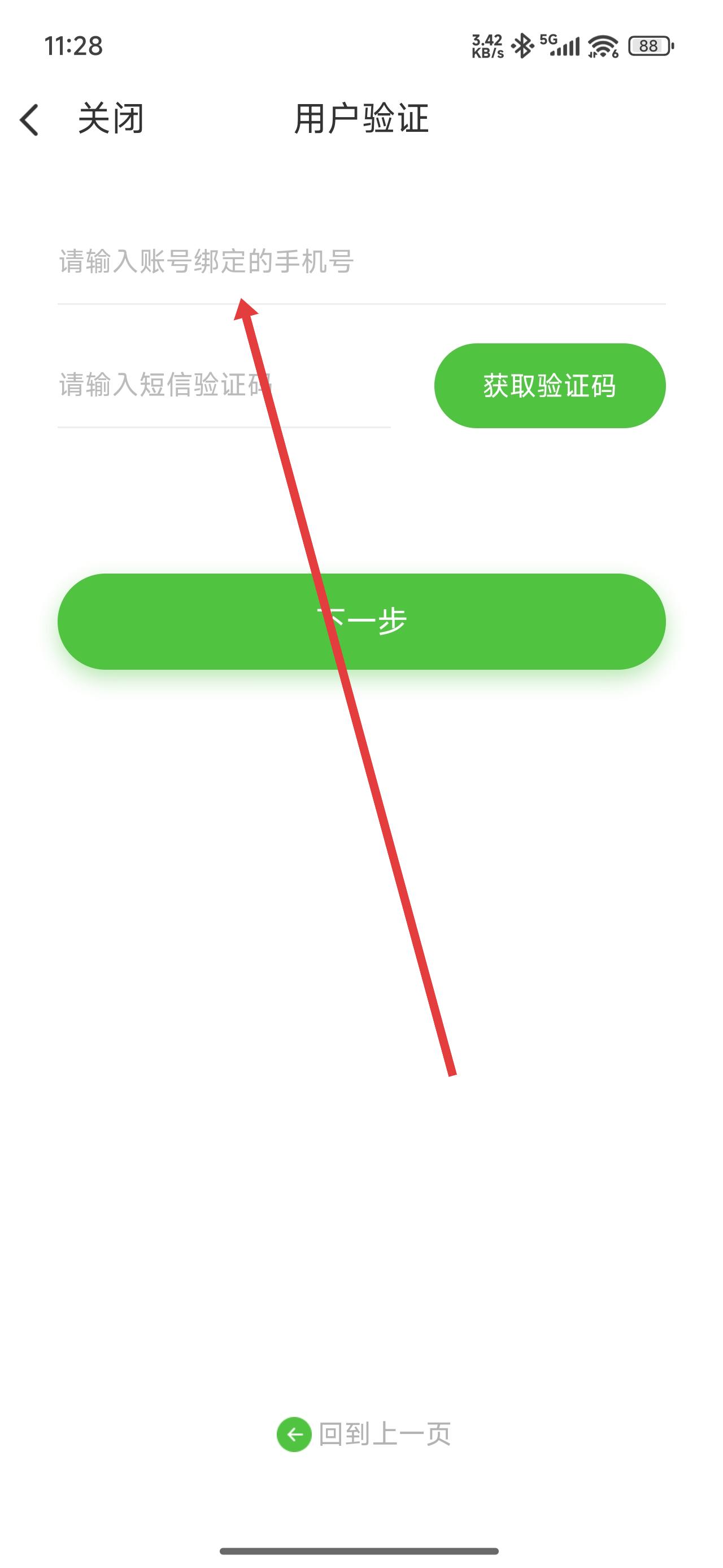 3、用户验证页在手机号输入框填写账号绑定的号码,准备获取验证码。