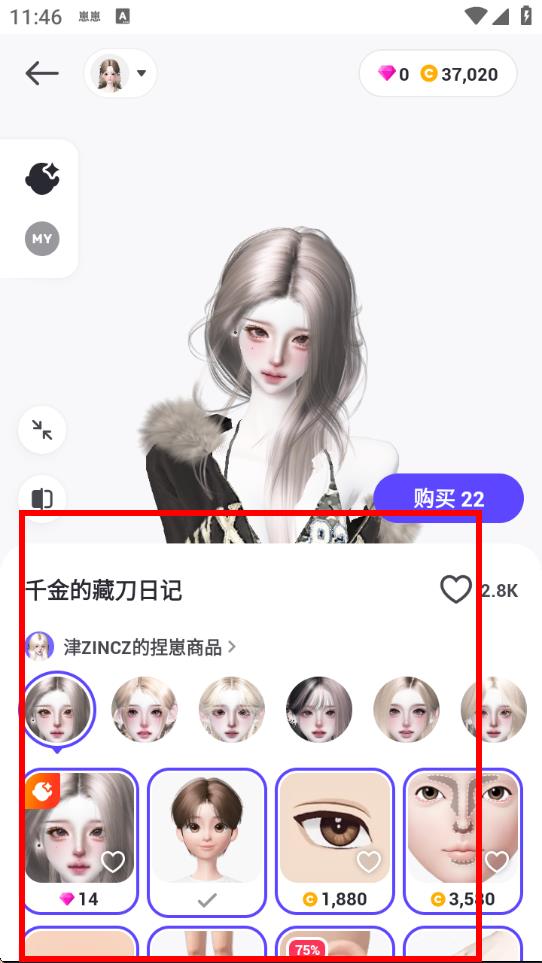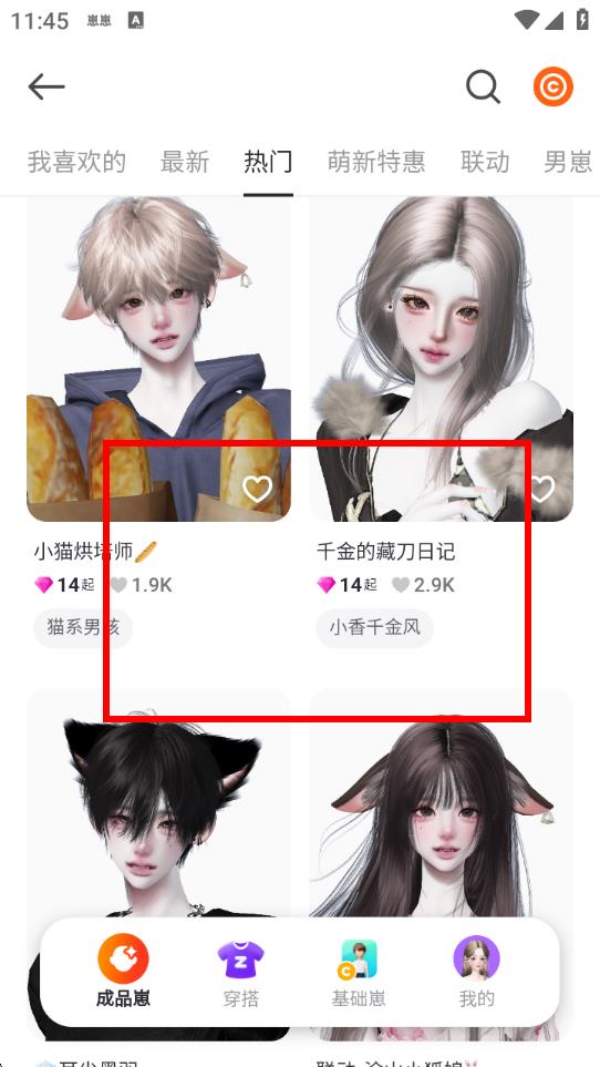 2、进入捏崽商店后,在展示页面中选择自己喜欢的捏脸风格,比如千金的藏刀日记。