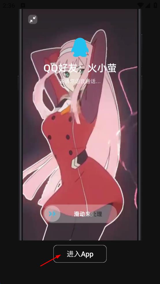 2、处理完QQ好友语音通话邀请(若有),点击进入App按钮,进入应用主界面,开始使用功能。