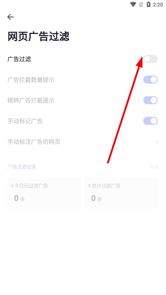 3、按需开启广告拦截数量提示、跳转广告拦截提示、手动标记广告等功能,以获得更好的广告过滤体验。