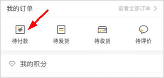 2、进入个人中心页面后,点击【待付款】功能按钮。