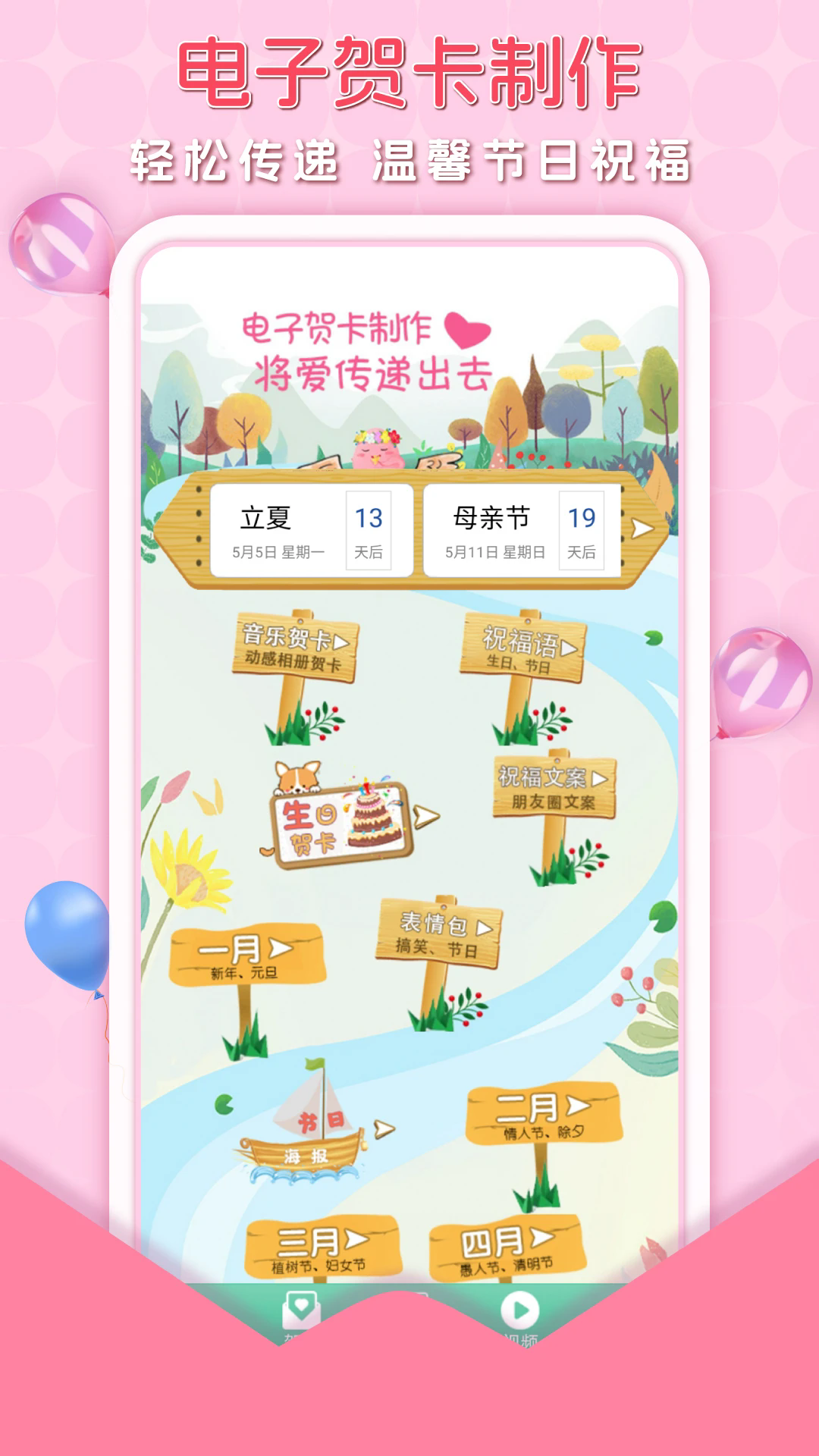 软件可以帮助用户制作文字、音乐、图片、视频等多样的精美贺卡。