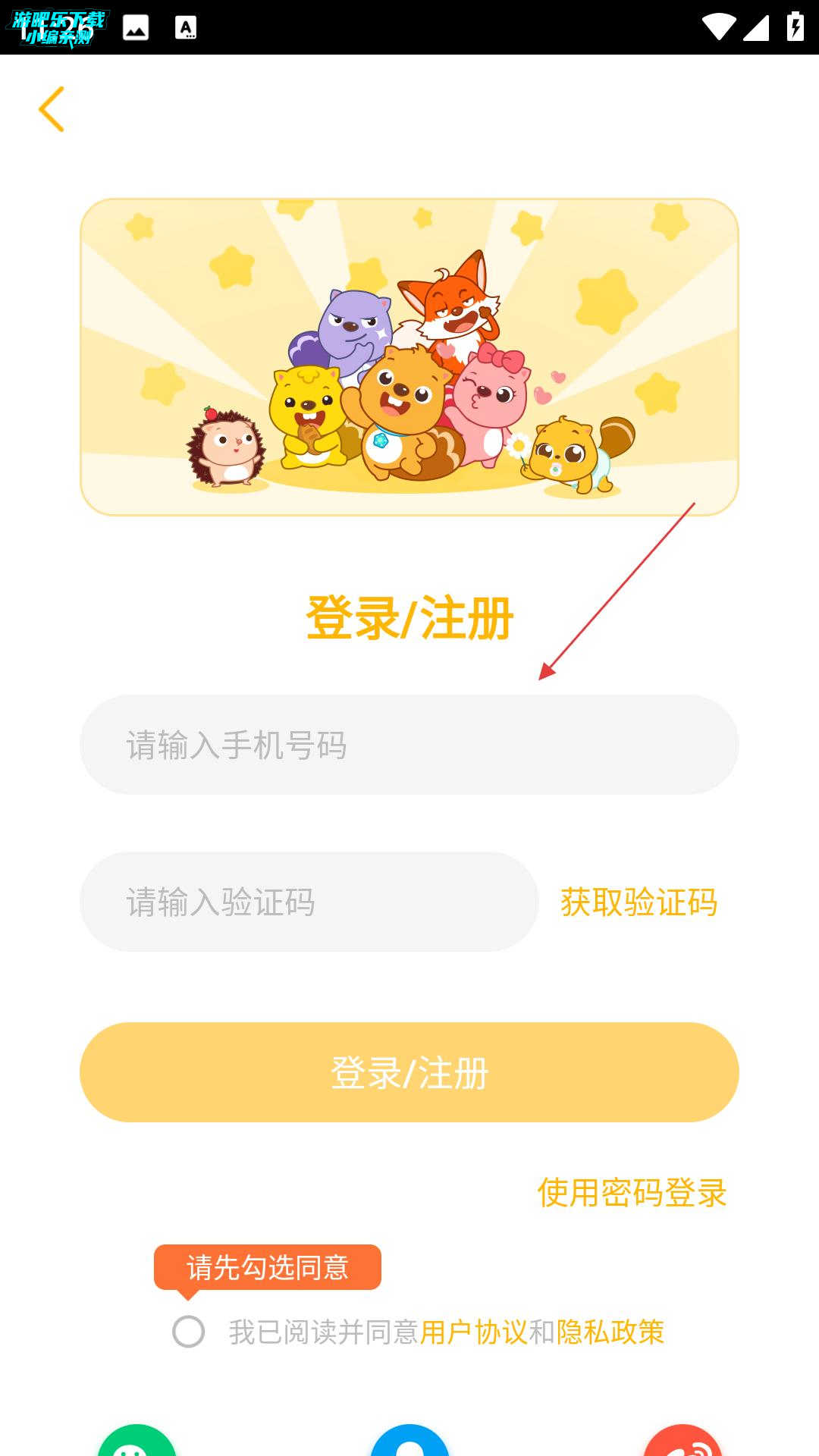 2、登录、注册页面需输入手机号码、验证码,勾选同意协议后完成操作,也可选择使用密码登录。