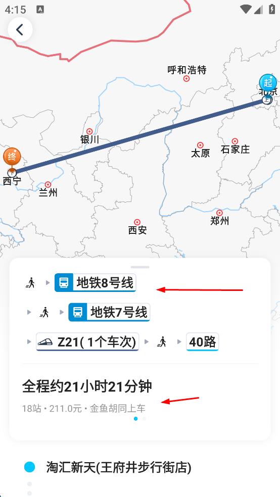 3、选定线路方案,查看详细行程,包括乘坐地铁线路、车次、耗时、等信息,可以按照指引规划出行 。