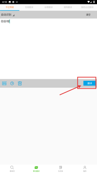 3、输入文字后,点击右侧蓝色翻译按钮,获取对应内容的翻译结果。