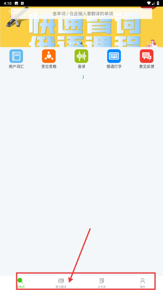 1、离线查询单词:打开千亿词霸俄语词典,无需联网,直接在搜索框输入需查询的俄语单词或中文词汇,点击搜索即可获取单词基本含义。