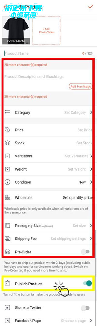 6、填写产品详细信息,如类别、价格、库存、变体、重量、运费和发货日期。别忘了发布你的产品以使其对买家可见。
