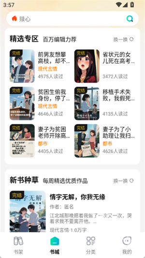 2、打开进入软件,在书城页面可以浏览最新,热门,推荐,种草等板块的书籍