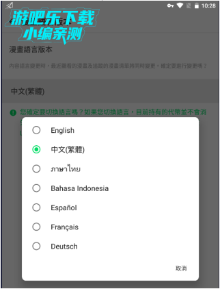 3、点击中文(繁体)选项后即可选择改变成其他语言,如英文、法语等