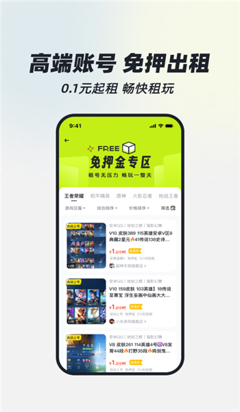 4. 用户可以很容易地通过软件租用游戏账号,并以高价购买闲置账号。