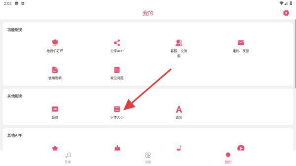 2、在我的页面的向下滑动找到其他服务,点击字体大小的选项,跳转至字体设置界面。