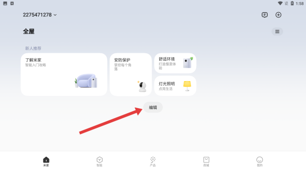 1、在米家的主页面中,点击编辑按钮进入编辑。