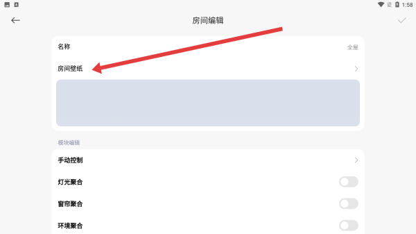 2、在进入到房间编辑页面中,可以点击房间壁纸按钮进行壁纸的更改。