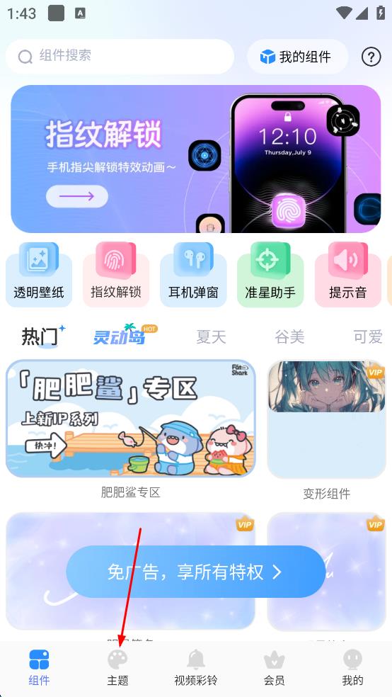 1、打开软件后,点击底部“主题”选项,进入主题广场页面,可看到精选、最新等分类的主题资源。